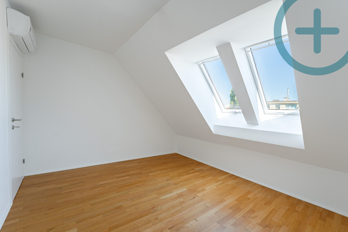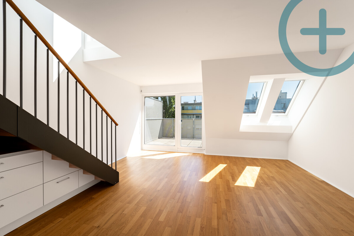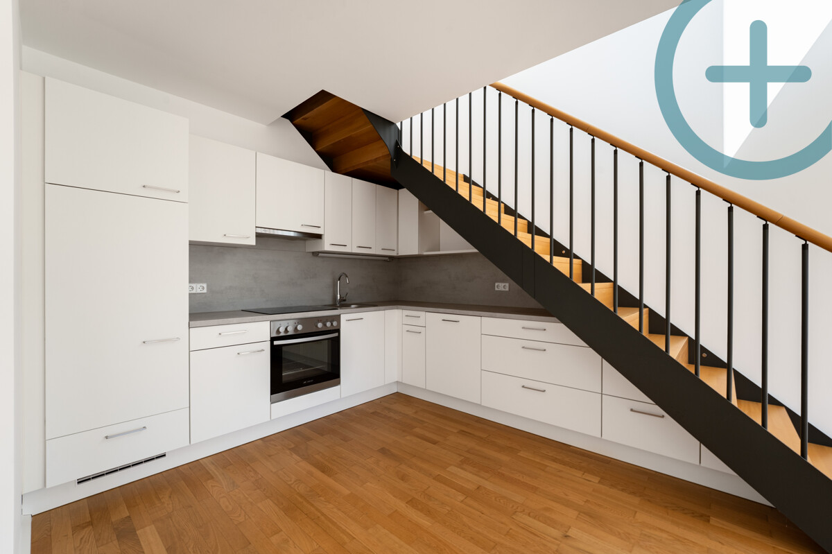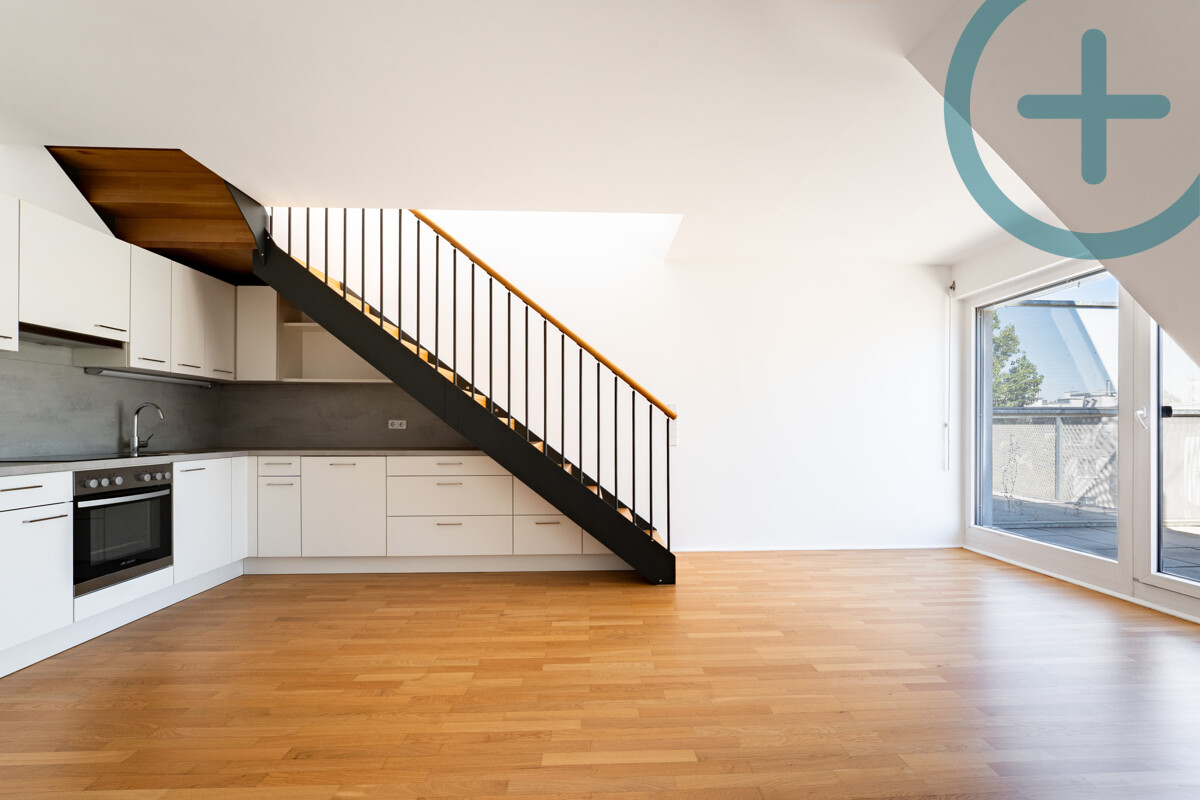 Diese moderne Dachgeschoss Maisonette vereint durchdachte Raumaufteilung mit großzügigen Freiflächen. Auf rund 84 m² Wohnfläche stehen drei zentral begehbare Schlafzimmer zur Verfügung, wobei das Elternzimmer über einen eigenen 6,51 m² Balkon verfügt. Das Herzstück bildet die ca. 28 m² große Wohnküche mit voll ausgestatteter Küchenzeile und Zugang zur 15,57 m² großen Terrasse, die ostseitig in den grünen Innenhof ausgerichtet ist und für entspannte Morgenstunden im Freien sorgt. Das Badezimmer überzeugt mit bodenebener Dusche und Doppelwaschbecken, ergänzt durch ein separates WC und einen praktischen Abstellraum. Große Fensterflächen, Beschattung und Klimaanlage schaffen ein helles und angenehmes Wohnklima.